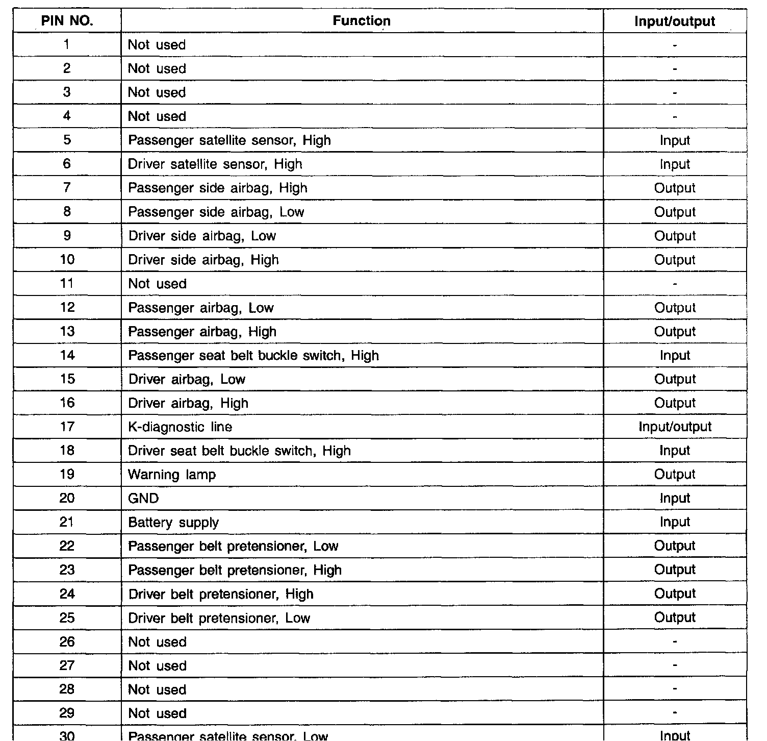 SRSCM Connector DAB+PAB+SAB+BPT Pin No. 1 - 30: