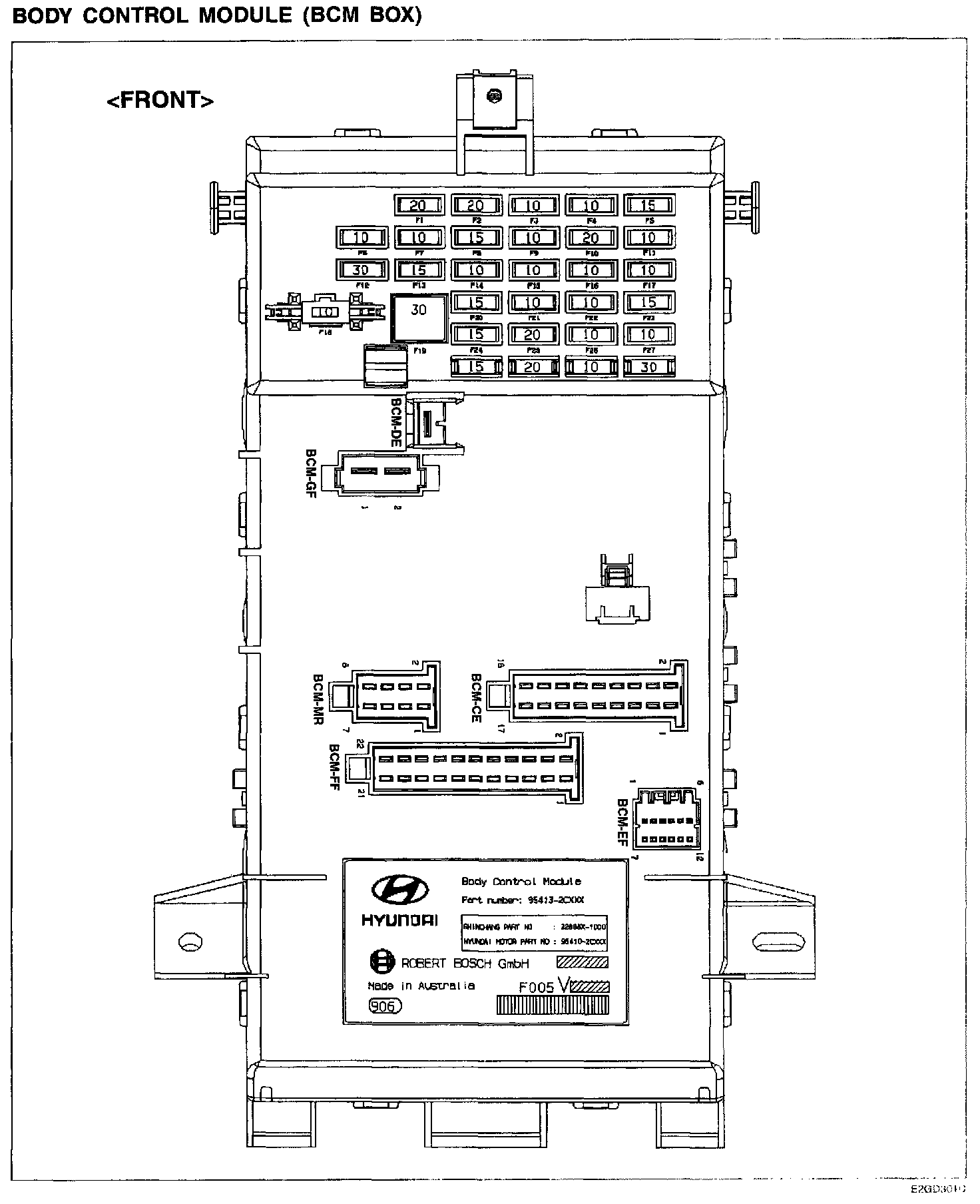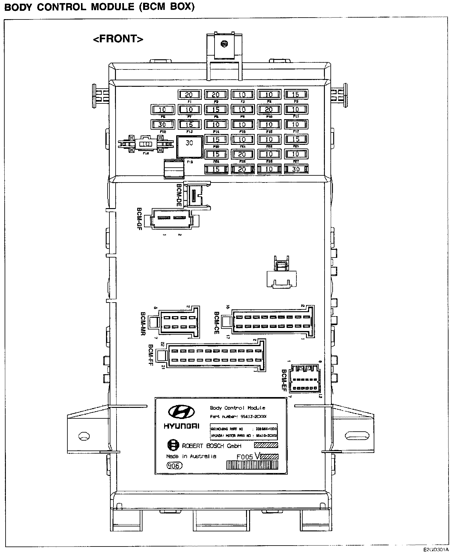 Body Control Module (BCM BOX) Front View: