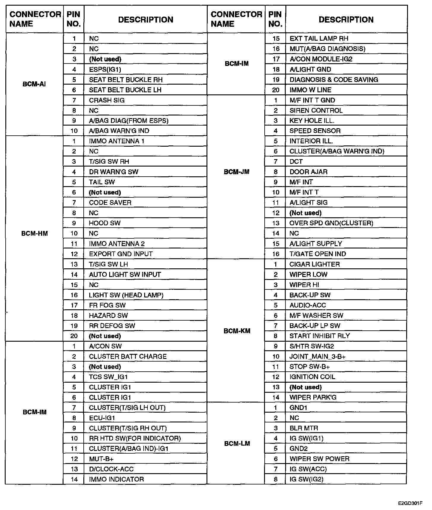 Body Control Module (BCM BOX) Rear View: