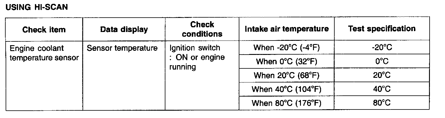 Engine coolant temperature sensor: 20-40 Nm (200-400 kg.cm, 14-29 lb.ft)