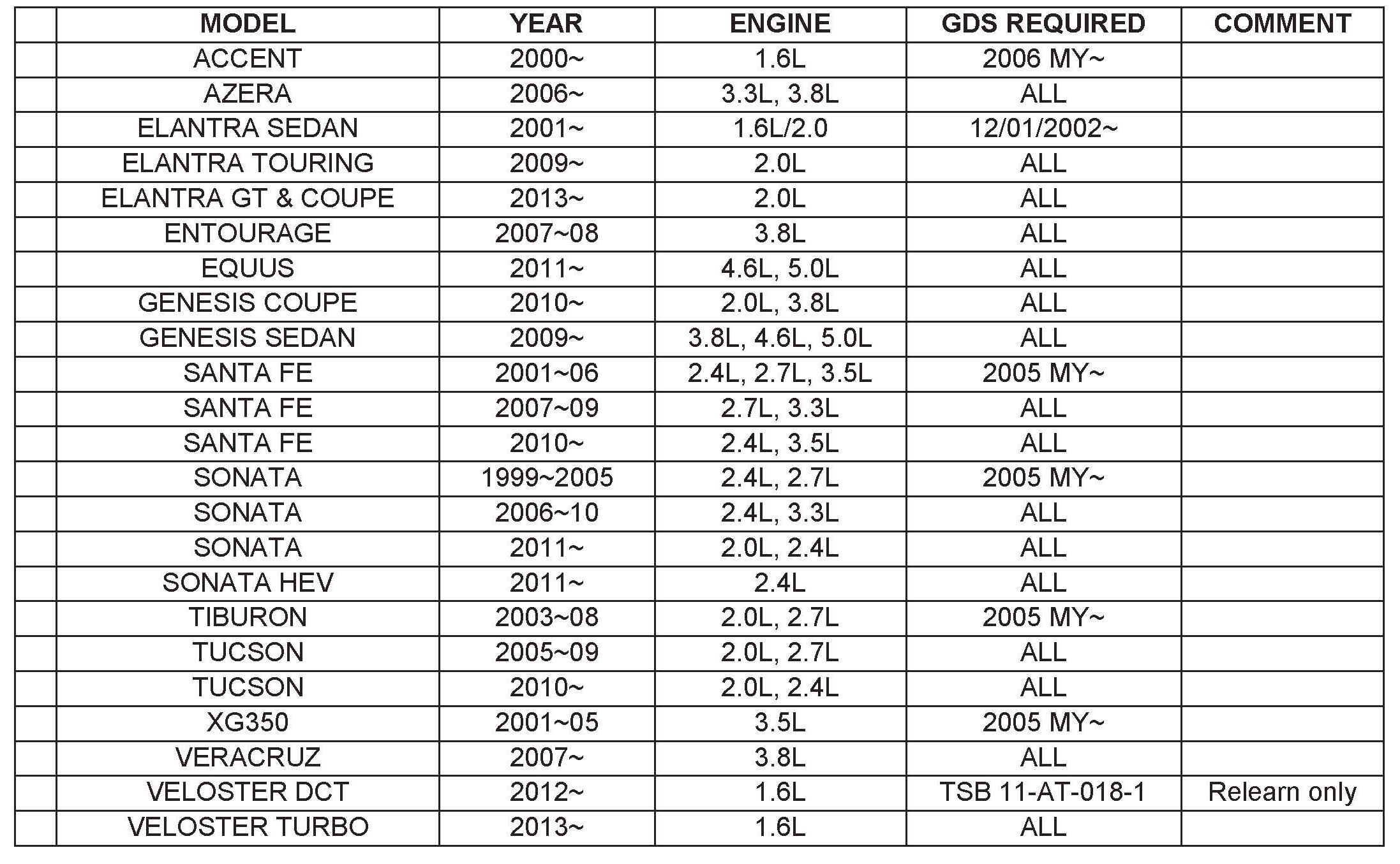 Home >> Hyundai >> 2003 >> Tiburon V6-2.7L >> Repair and Diagnosis >> Powertrain Management >> Computers and Control Systems >> Engine Control Module >> Technical Service Bulletins >> All Technical Service Bulletins >> A/T Controls - ECM/TCM Reset And Relearn Adaptive Values