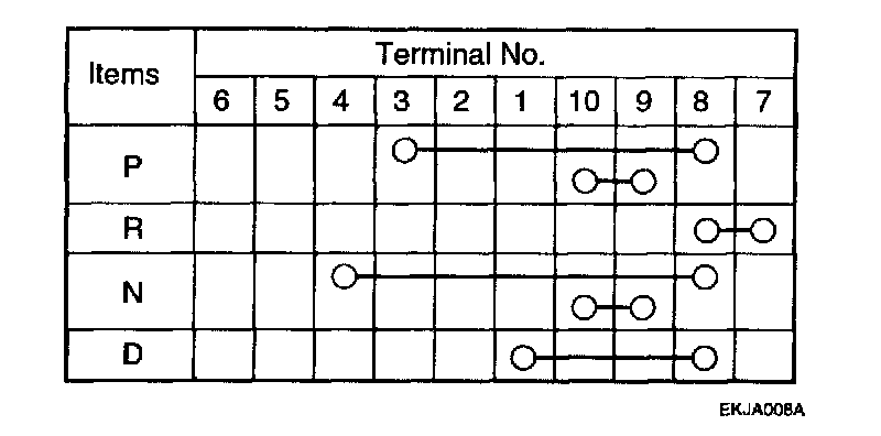 TRANSAXLE RANGE SWITCH CONTINUITY CHECK