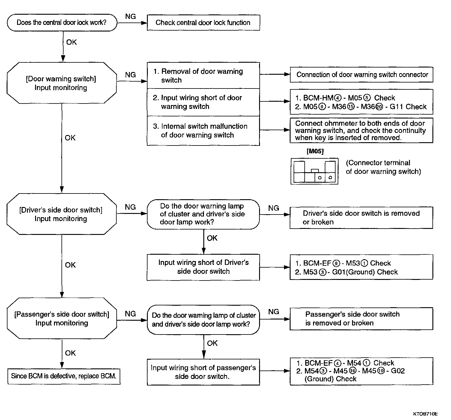 - Input Door warning switch (H4), Driver's side door switch (E9), Passenger's side door switch (E4)