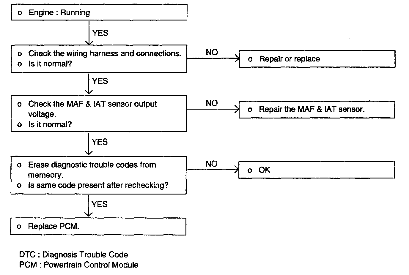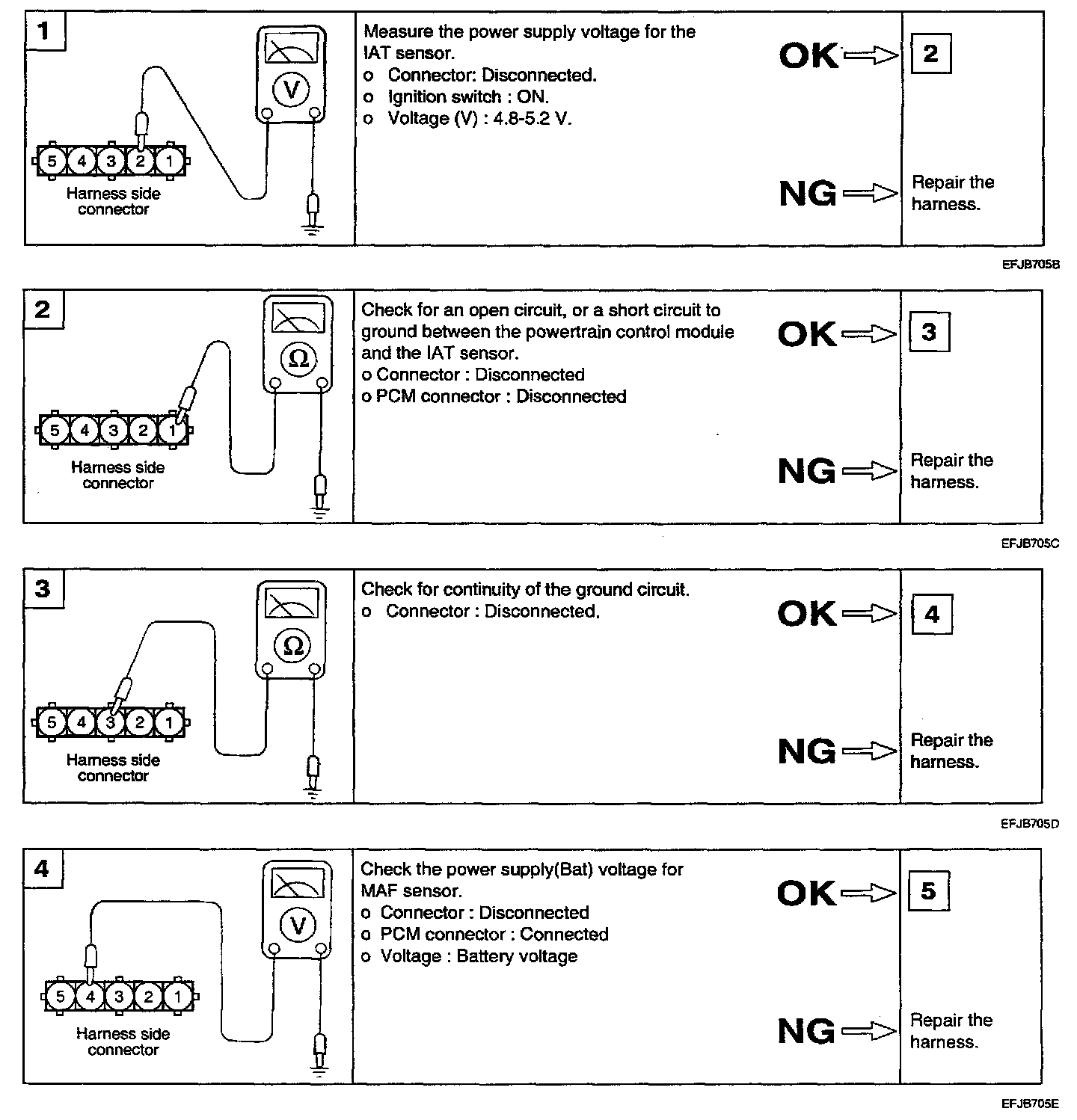 3. If the engine can idle even if the MAF sensor output voltage is out of specification, check for the following conditions;