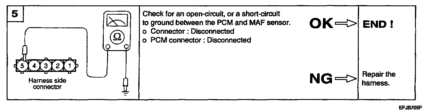 2. If the MAF sensor output voltage is other than 0 when the ignition switch is turned on (do not start the engine), check for a faulty MAF sensor or PCM.
