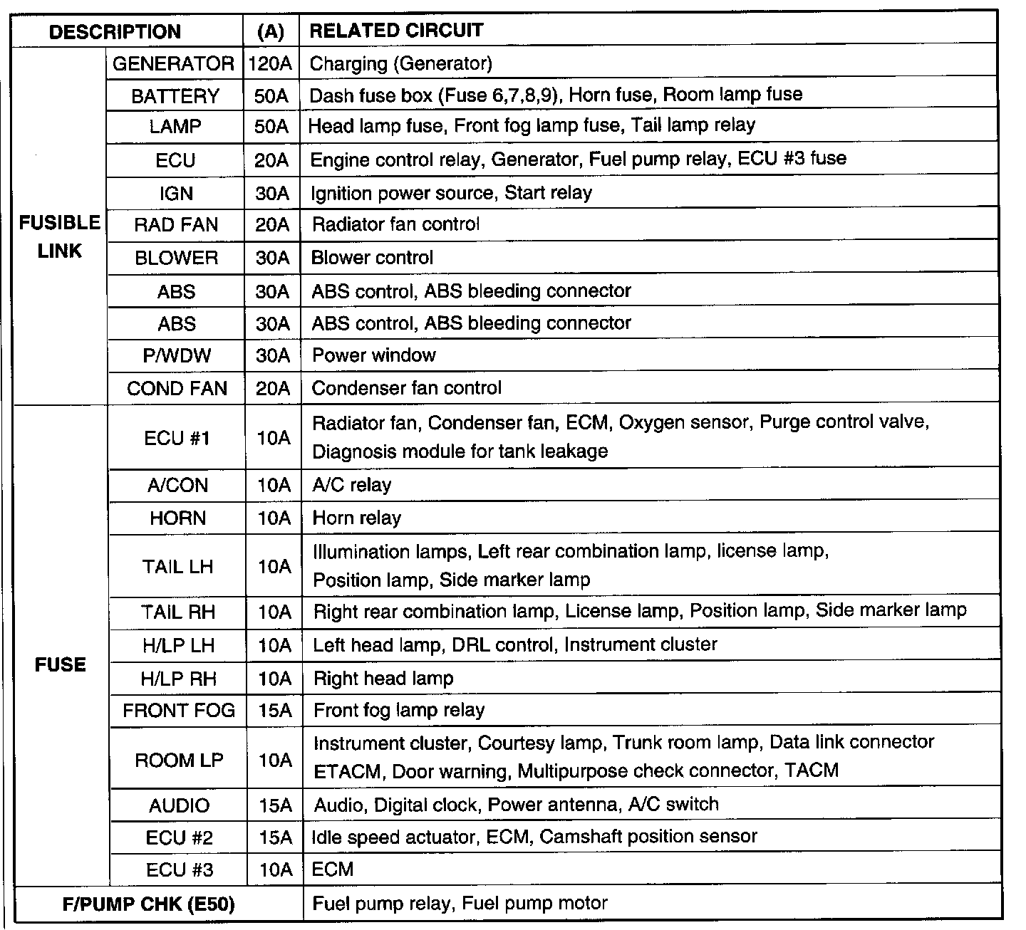 Engine Compartment Relay & Fuse Block Circuit Details: