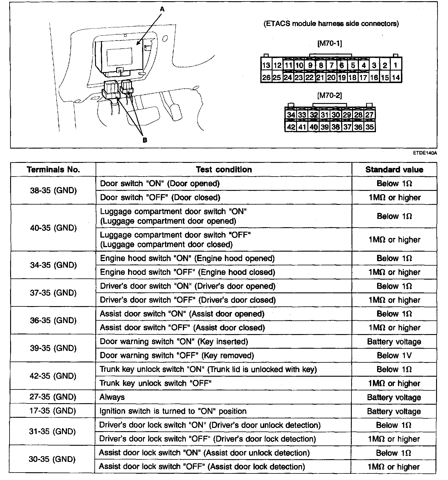 Disconnect the wire connectors(B) from the ETACS module(A).