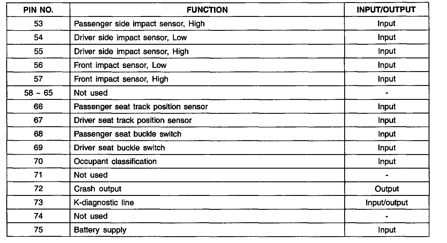 SRSCM Connector DAB+PAB+SAB+BPT Pin No. 53 - 75: