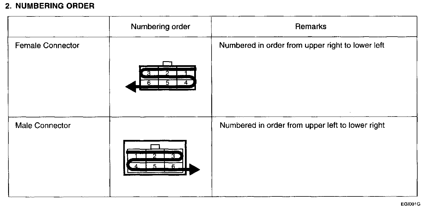 UNLESS OTHERWISE STATED, ALL CONNECTOR VIEWS ARE FROM THE TERMINAL SIDE OF THE CONNECTOR.