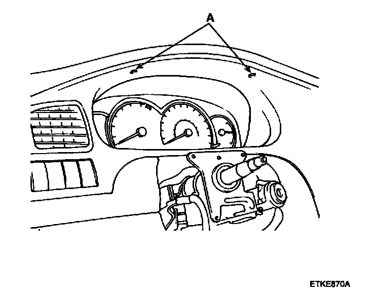 2. Remove the 2 screws (A) holding the instrument facia panel.