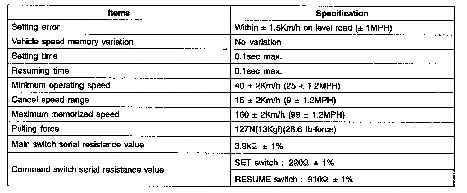 Cruise Control: Specifications
