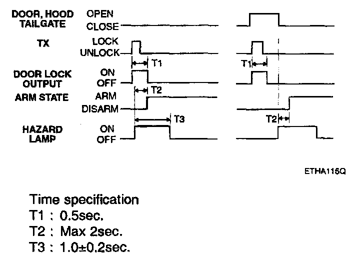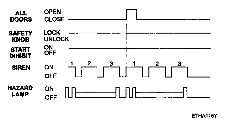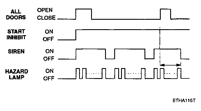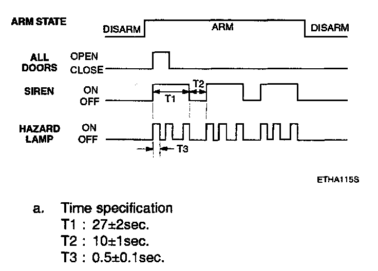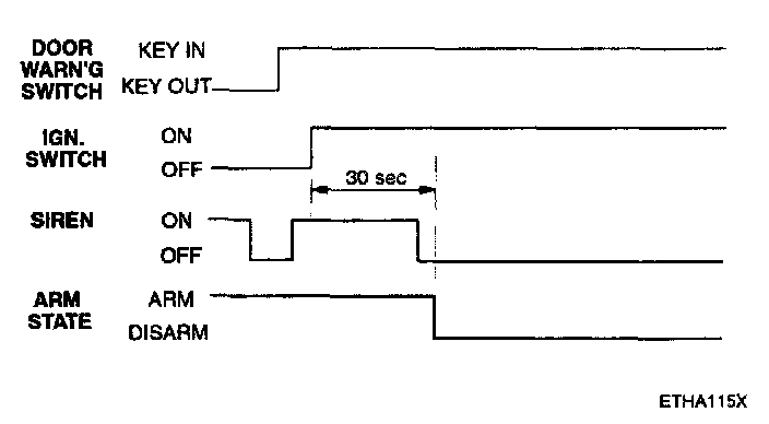f. Disarmed after 30 sec when the ignition switch is turned on while the alarm is sounding.