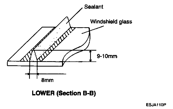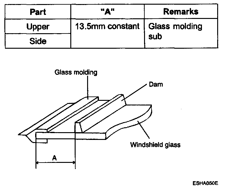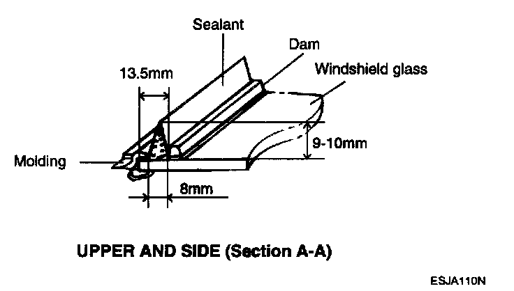 5. Install the windshield glass molding. Do not allow any gaps.