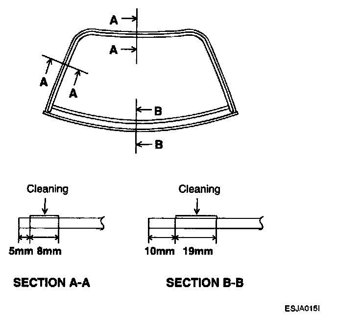 1. Using a knife or the special tool(09861-31200), cut the old sealant smoothly to a thickness of about 2 mm (0.08 in.) on the bonding surface around the entire windshield flange.