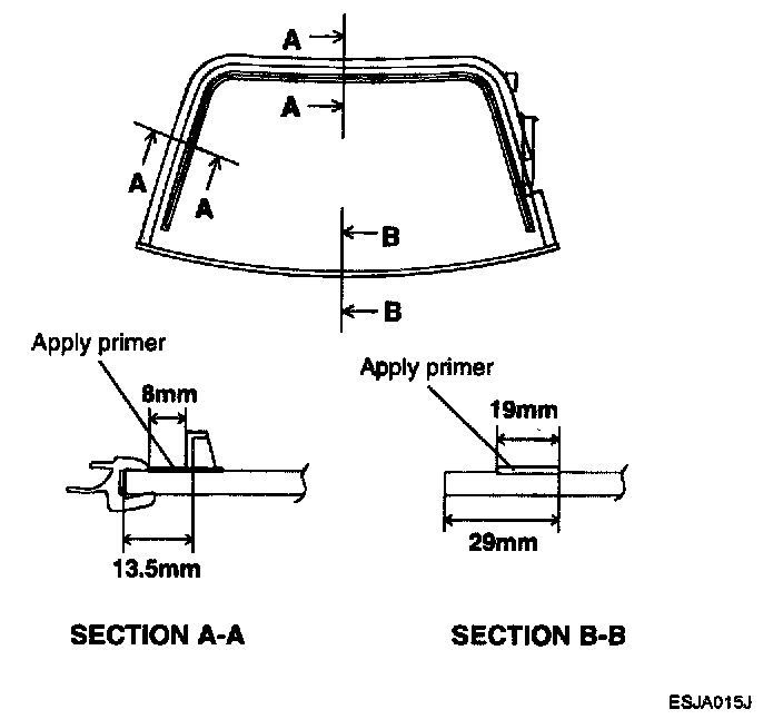 2. Do not apply body primer to the glass.