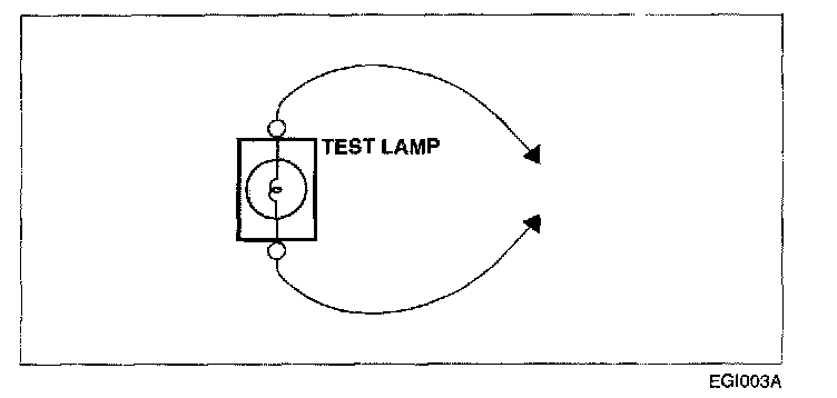 b. Connect the other lead of the test lamp or voltmeter to a selected test point(connector or terminal).