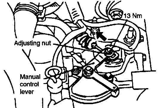 2. Loosen the control cable to manual control lever coupling nut to free the cable and lever.