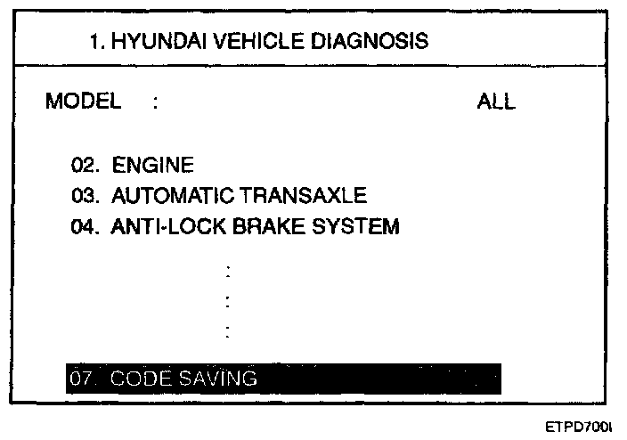 4. After selecting "CODE SAVING" menu, button "ENTER" key, then the screen will be shown.