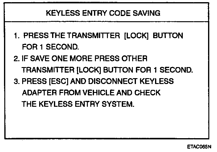 5. After removing the ignition key from key cylinder, push "ENTER" key to proceed to the next mode for code saving. Follow steps 1 to 3 and then code saving is completed.