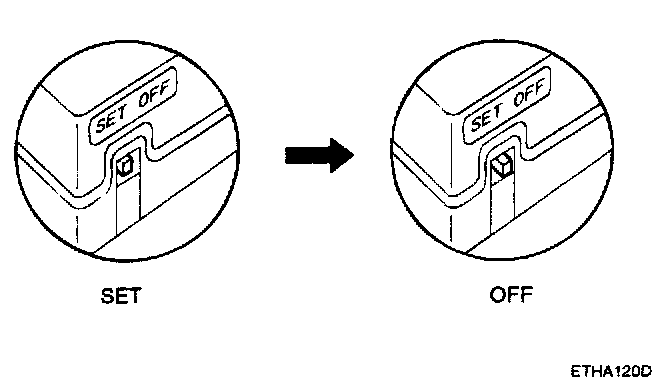 - Activate the keyless entry/receiver unit and change the code saving switch of the receiver unit from "OFF" to "SET".