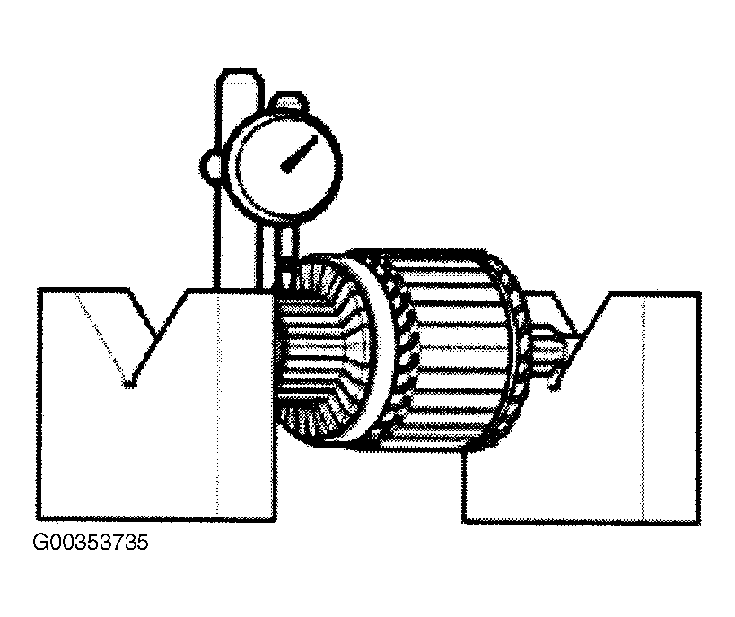 1. Place the armature on a pair of V-blocks, and check the runout by using a dial gauge. See Fig 1 . See STARTER SPECIFICATIONS  .