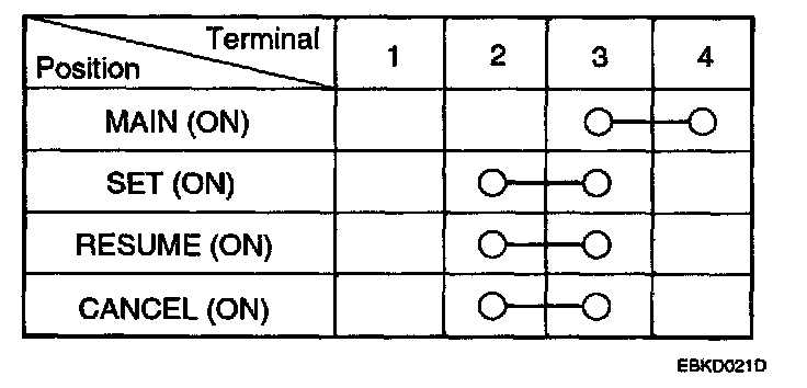 CRUISE CONTROL SWITCH TEST1. Disconnect the battery negative cable, then disconnect the positive cable, and wait at least three minutes