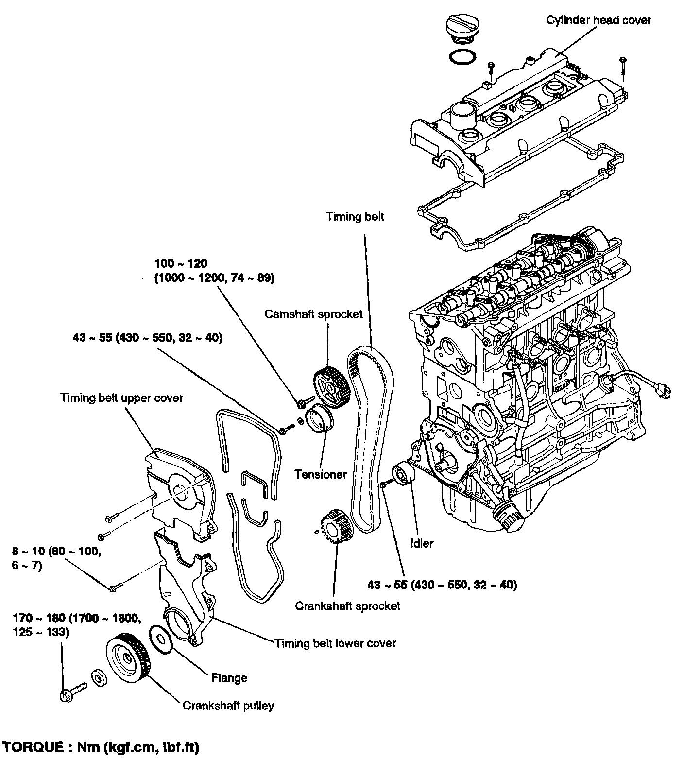 Crankshaft pulley bolt 170 - 180 Nm (125 - 133 ft. lbs.)