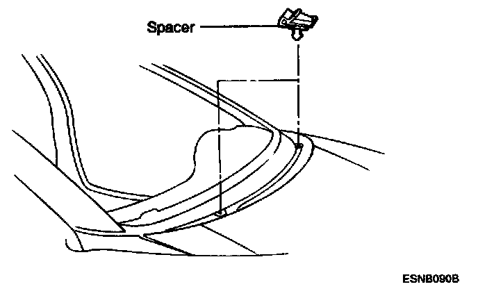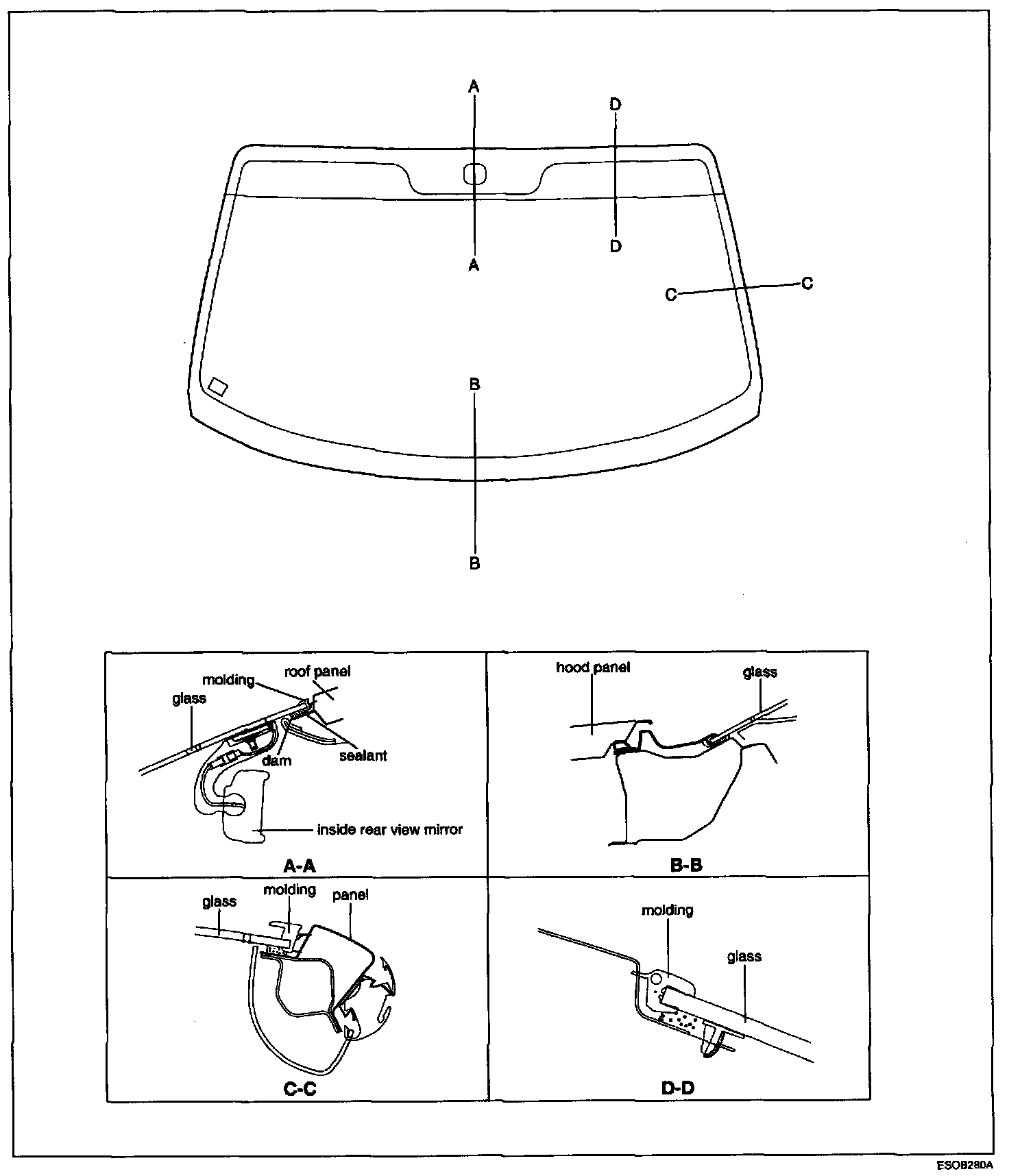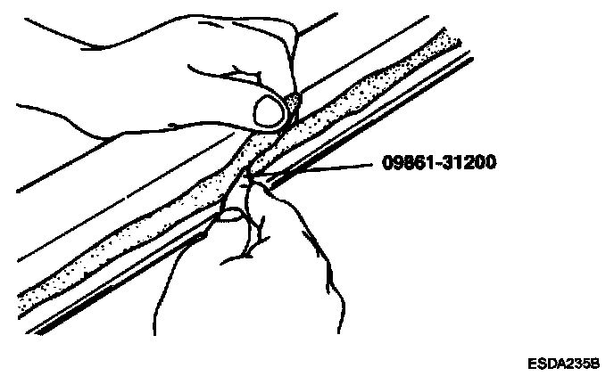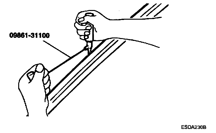 CAUTION: Be careful not to remove more adhesive than necessary, and also not to damage the paintwork on the body surface with the knife. If the paint work is damaged, repair the damaged area with touch-up paint.