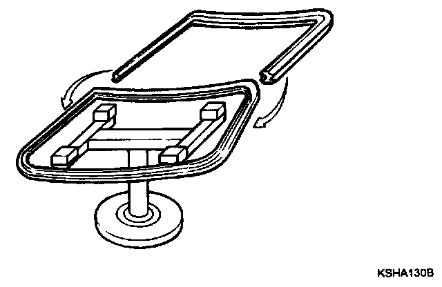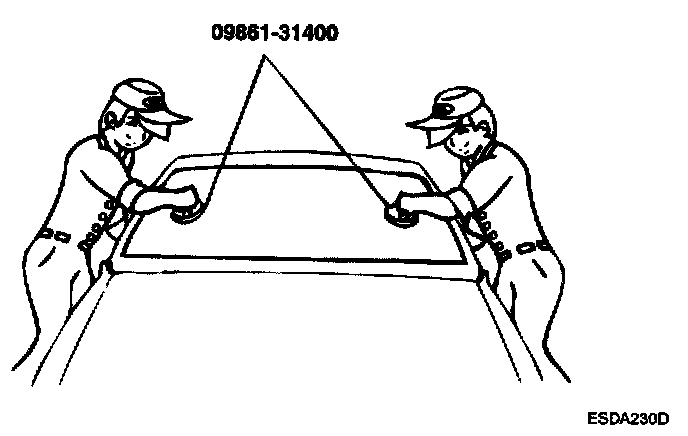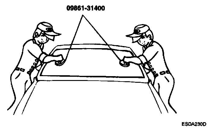 11. Using suction cups or the special tool (09861-31400), lower the glass over the opening, align it with the marks made in step 4 and set it down on the sealant.