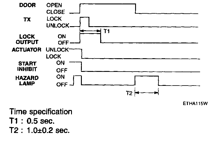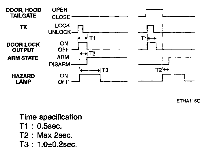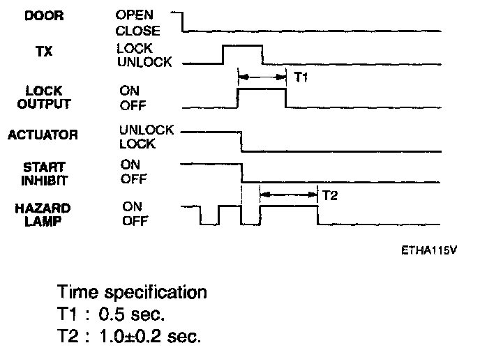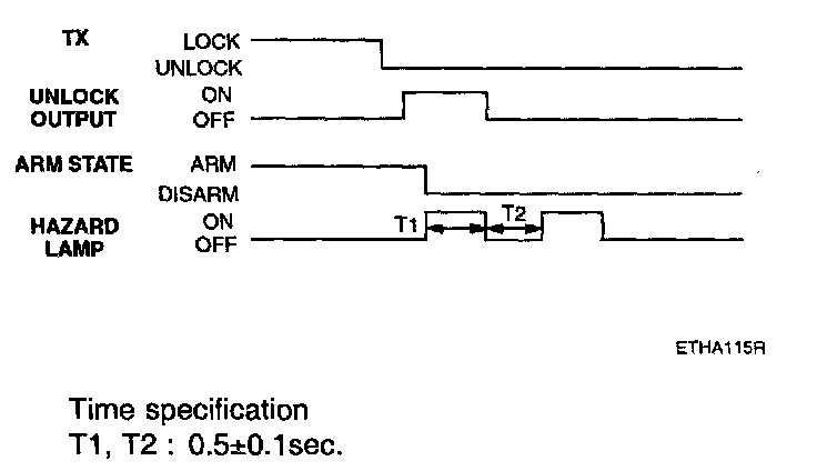 - Pressing the unlock button on the TX key. The hazard lamps shall be flashed twice for 1 sec period (of cycle), 50% duty rate.