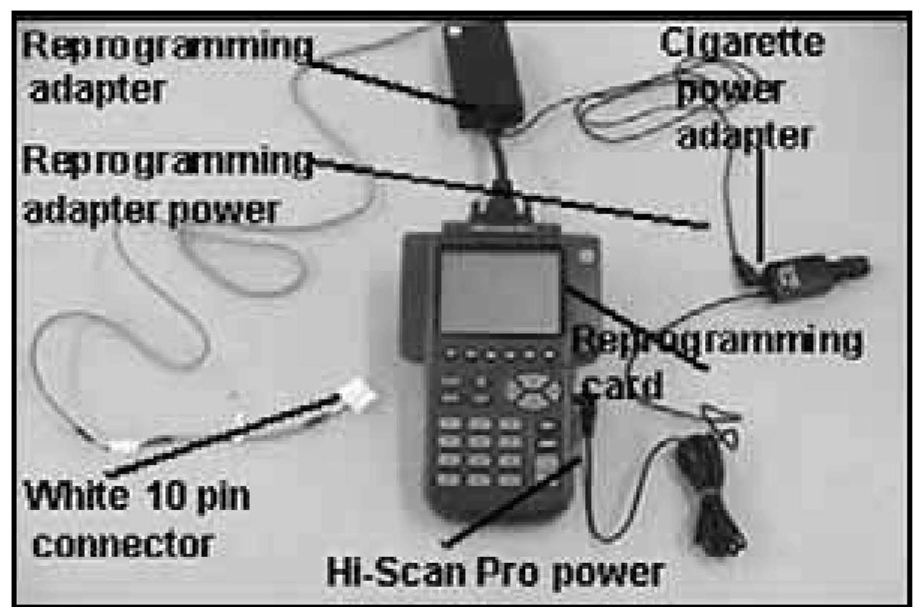 2. Install the white 10-pin TCM reprogramming connector to the Hi-Scan Pro.