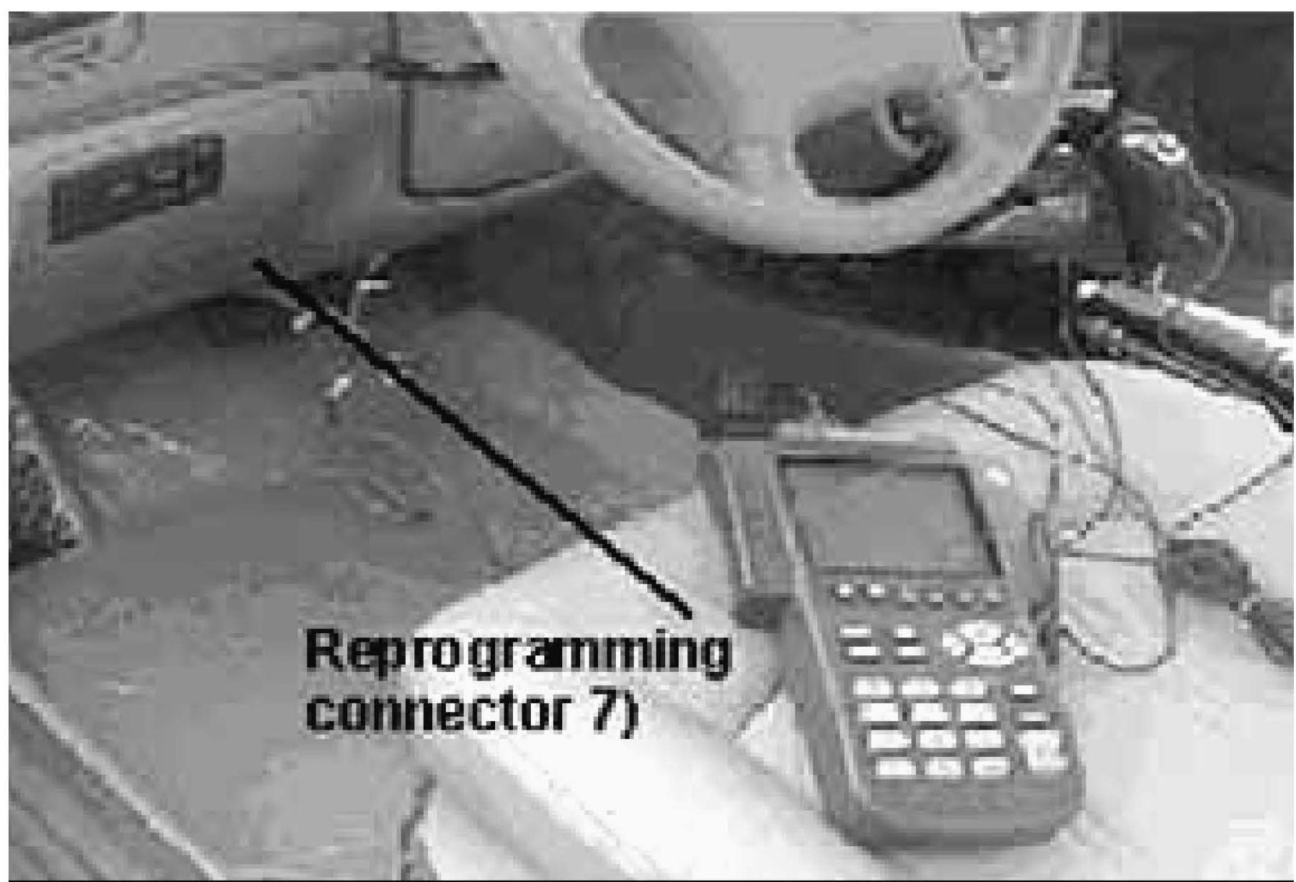 6. Connect the white 10 pin connector to the reprogramming connector under the crash pad.