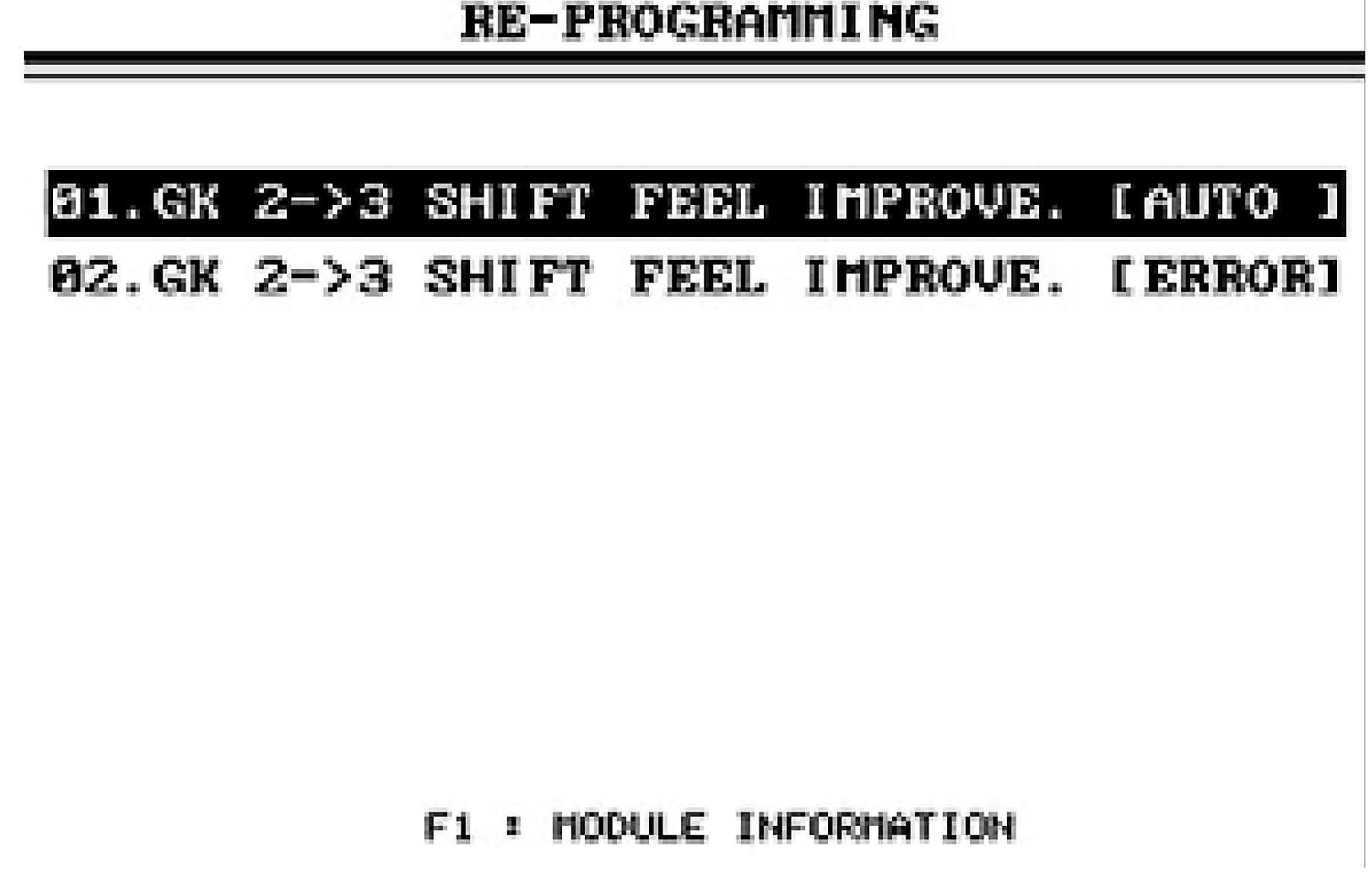 4. Select option "01. GK 2-> SHIFT FEEL IMPROVE. [AUTO]" and press ENTER.