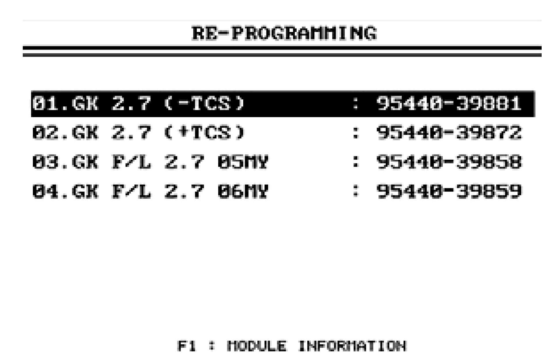 This article provides the procedure to reprogram the Transaxle Control Module (TCM) software for 2004~06 Tiburon 2.7L vehicles using the Hi-Scan Pro.