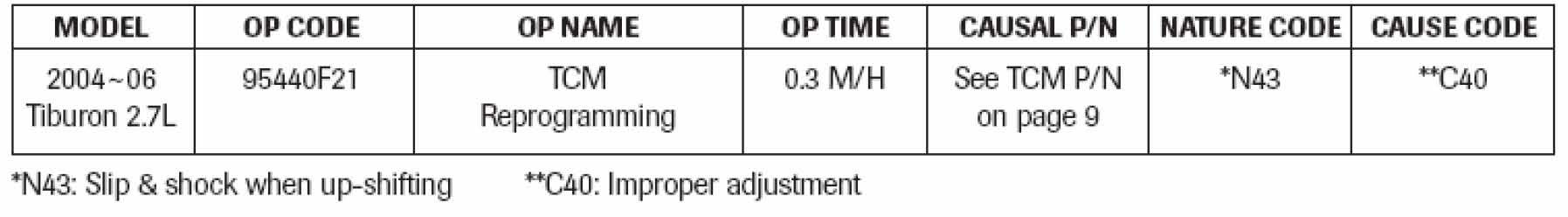 2004-06 TIBURON 2.7L TCM REPROGRAMMING PROCEDURE - 2-3 SHIFT FEEL