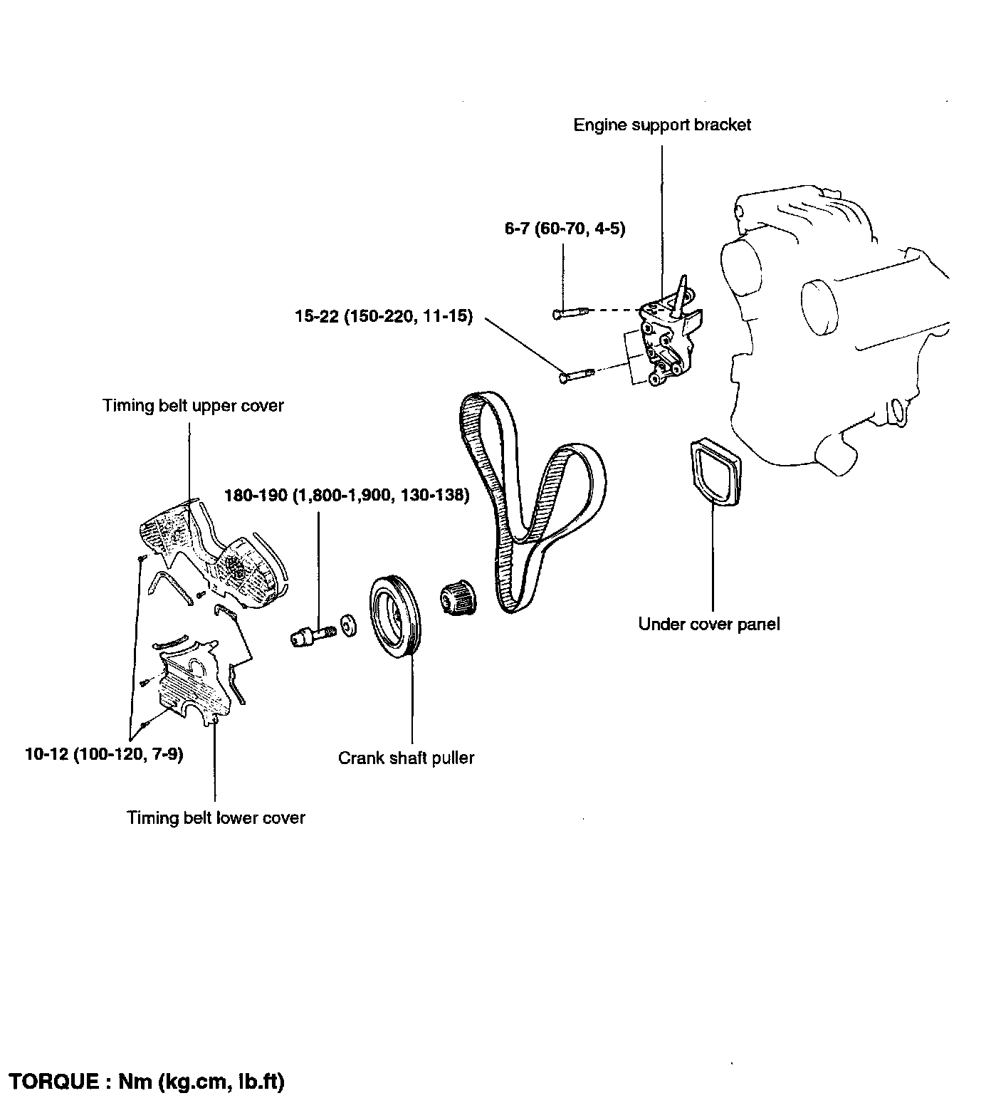 Timing belt idler pulley bolt 50 - 60 Nm (36 - 43 ft. lbs.)