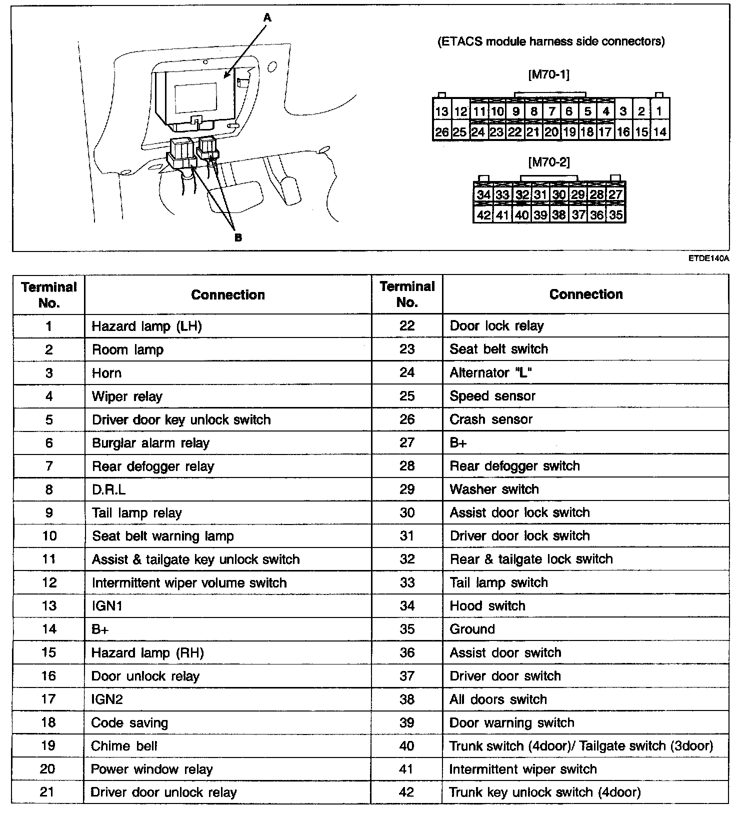 Disconnect the wire connectors(B) from the ETACS module(A).