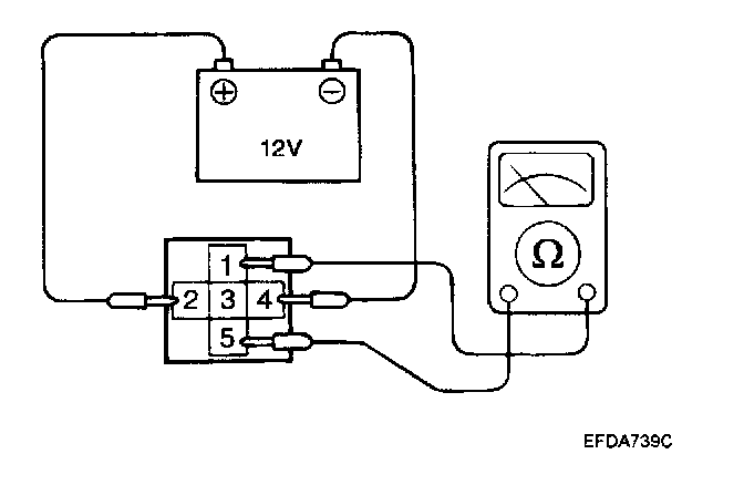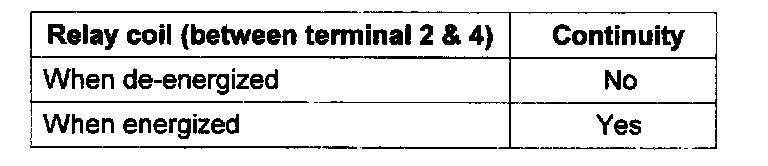 1. Check continuity of relay contacts between terminals 5 (+) and 1 (-).