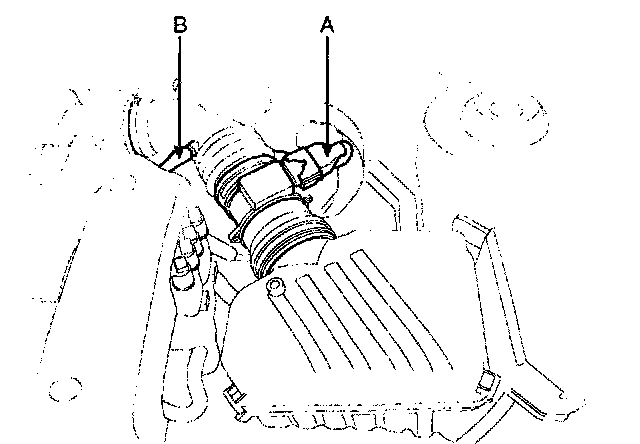 4. Disconnect the air flow sensor connector (A) and breather hose (B).