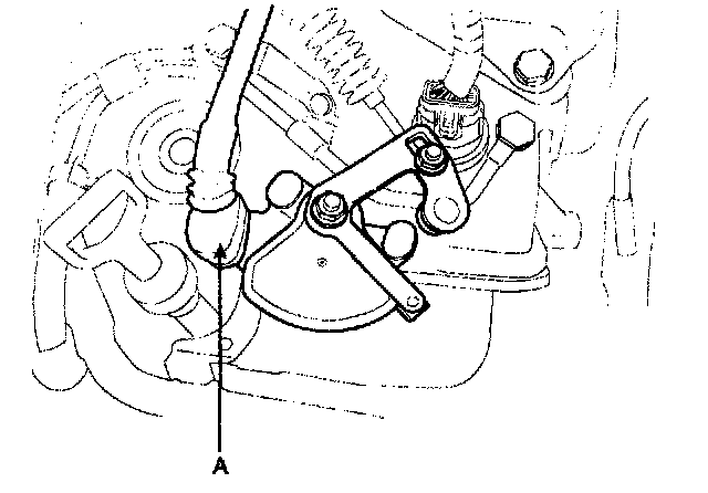 7. Remove the control cable to transaxle range switch (A) mounting nut (B).