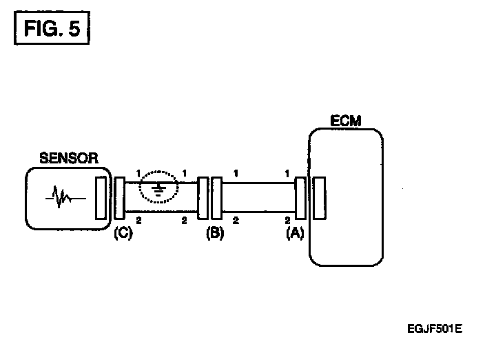 a. With each connector still connected, measure the voltage between the chassis ground and terminal 1 of each connectors (A), (B) and (C) as shown in [FIG. 4].