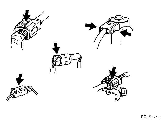 b. When the connector is disconnected Check missed terminal, crimped terminal broken core wire by slightly pulling the wire harness Visually check for rust, contamination, do formation and bend.
