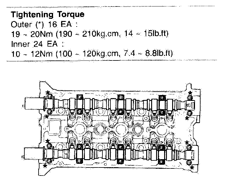 Outer (a) 16 EA 19 - 20 Nm (190 - 21O kg-cm, 14 - 15 ft. lbs.)