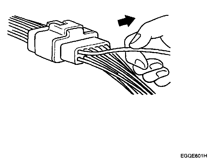 3. Slightly shake the connector and wiring harness vertically and horizontally.