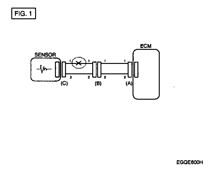 If an open circuit occurs (as seen in [FIG. 1]), it can be found by performing Step 2 (Continuity Check Method) or Step 3 (Voltage Check Method) as shown below.