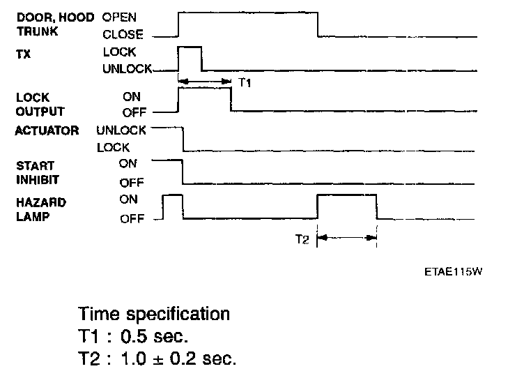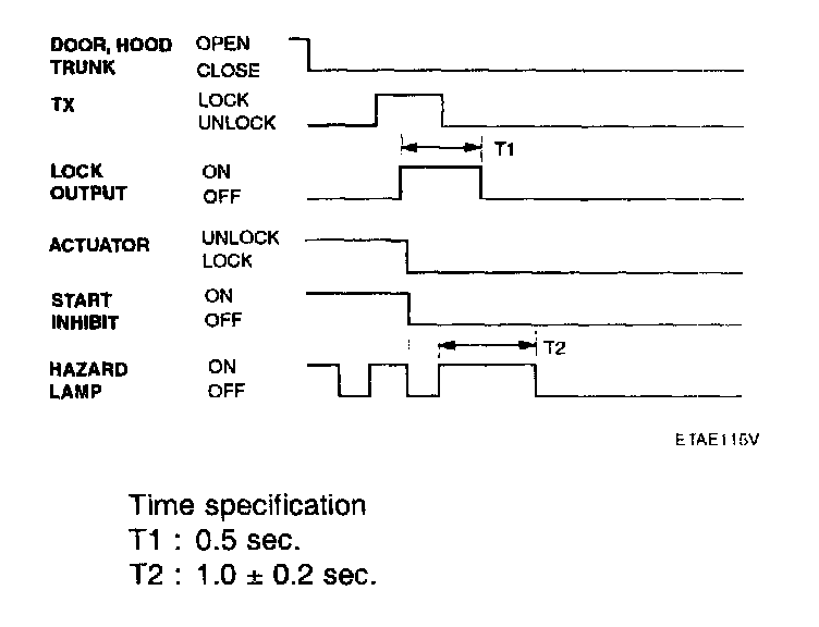 If transmitter(TX) lock signal is received when a door, trunk or hood is open ,then lock output is given and a flash of hazard is not given.