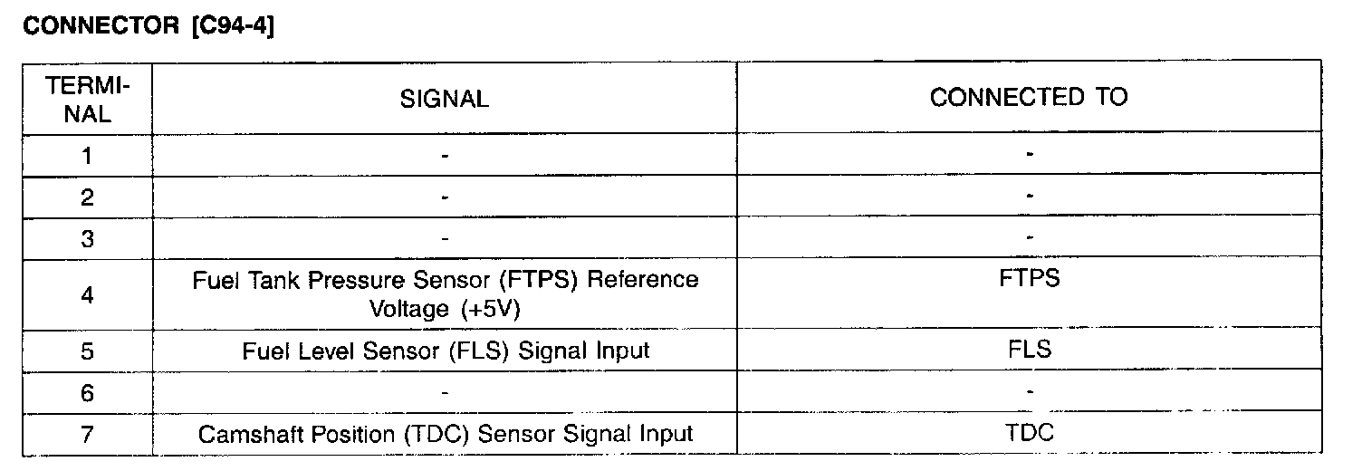 ECM Terminal LayoutCONNECTOR (C94-1)