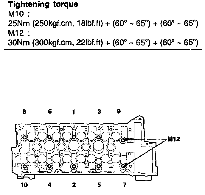 Tightening Torque 43 - 55 Nm (430 - 550 kgf-cm, 32 - 40 ft. lbs.)