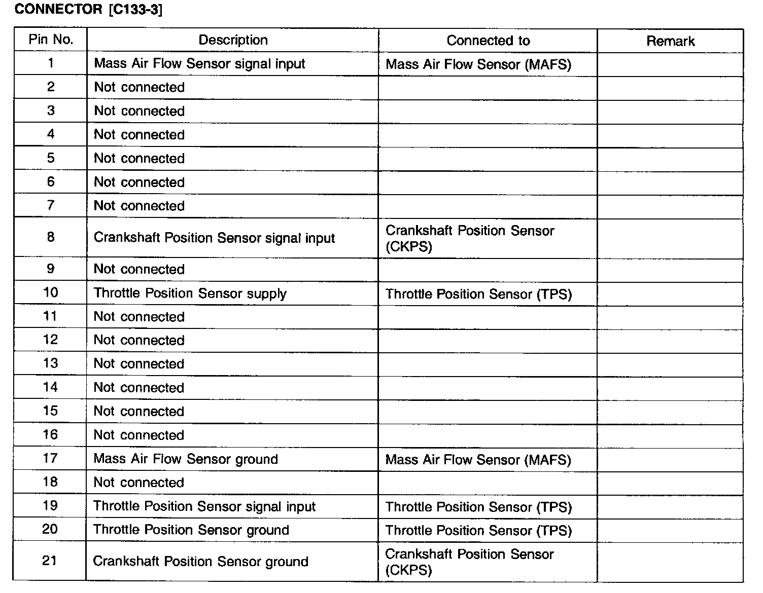 Pin No: 1-21: