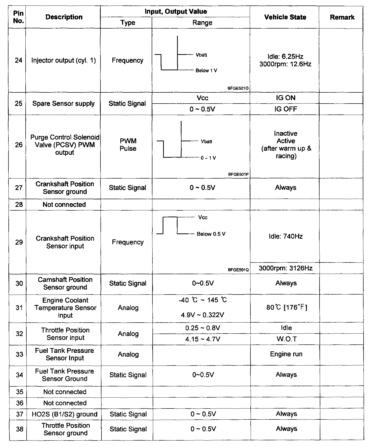Pinout Values and Diagnostic Parameters